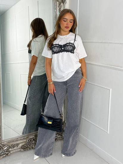 Black Bra Print Oversized T-shirt - White