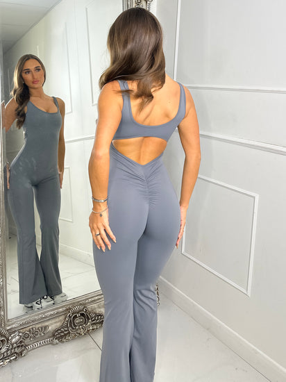 Body Sculpt Jumpsuit With Ruche Bum Detailing - Charcoal
