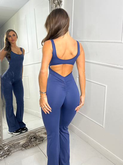Body Sculpt Jumpsuit With Ruche Bum Detailing - Navy