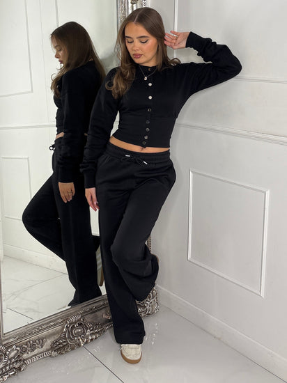 Button Up Cinch Waist Tracksuit - Black