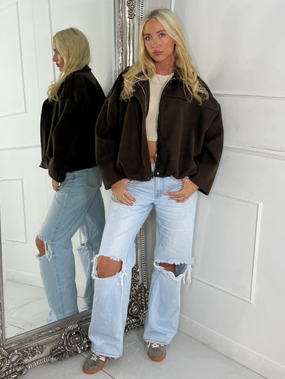 Collared Oversized Bomber Jacket - Brown