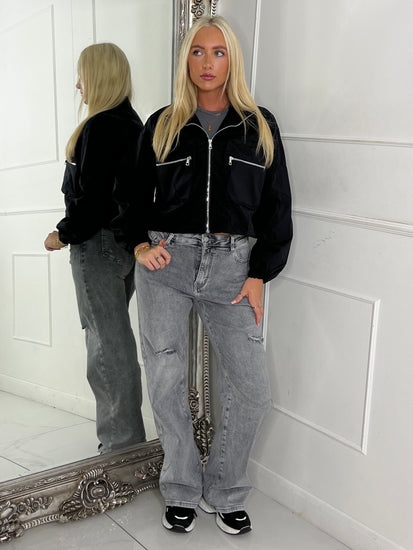 Add a splash of bold style with this Double Pocket Detail Cropped Jacket in Black. Its playful cropped cut and handy pockets bring both flair and function, perfect for layering and turning heads wherever you go. Elevate your outfit with this vibrant, versatile piece that’s as fun as it is fashionable.