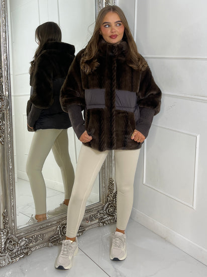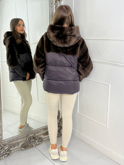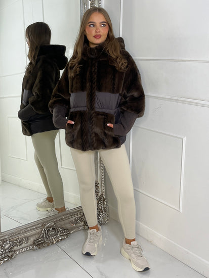 Faux Fur Patch Detail Hooded Jacket - Brown