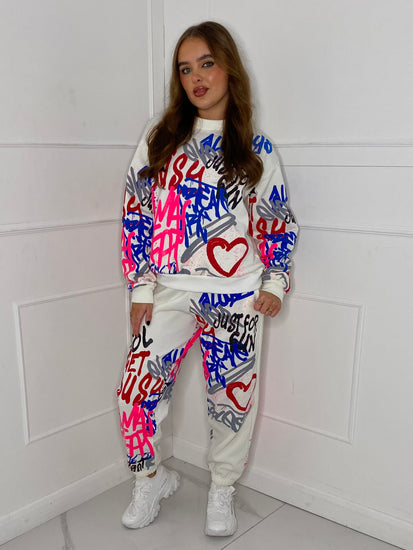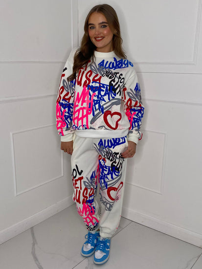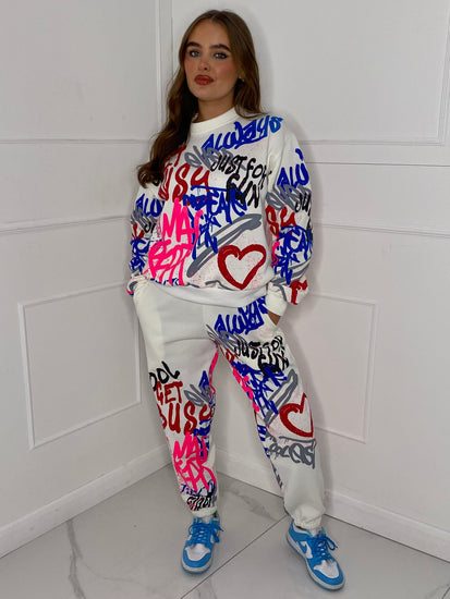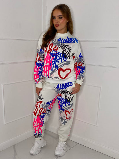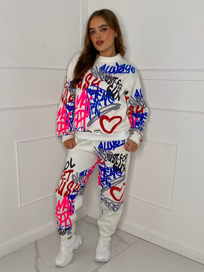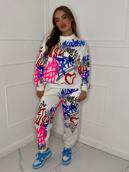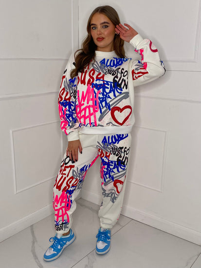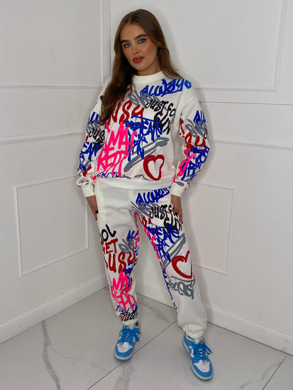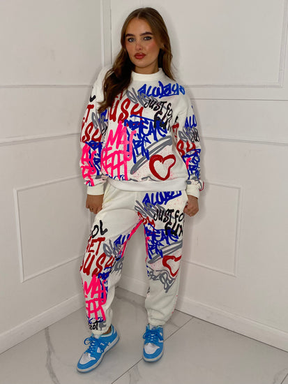 Graffiti Print Tracksuit - White