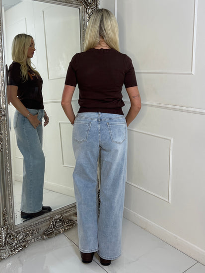H Gold Buckle Detail Short Sleeve Top - Brown