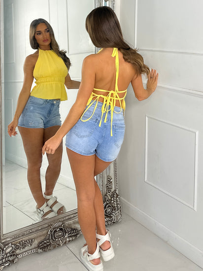 Halter neck tie back chiffon top - Yellow