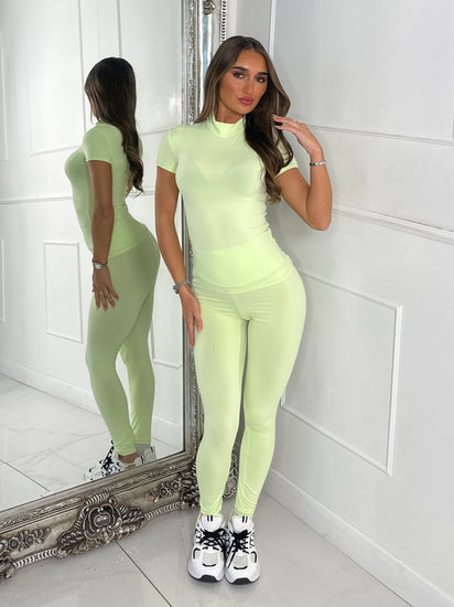 High Neck Second Skin Top & Sculpt Panel Leggings - neon green