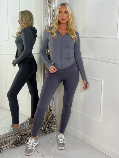 Hooded Gym Top & Gym Leggings Set - Dark Grey