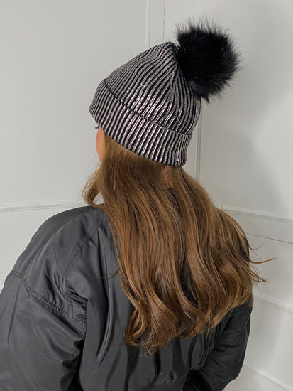 Make a statement in this cool black Metallic Bobble Hat! Crafted from the highest quality fabrics, this hat is sure to make any outfit pop.