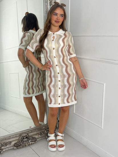 Brighten up your wardrobe with our Multi Coloured Collar Detail Crochet Dress in shades of Beige, Sage, and White. This playful dress features a unique collar detail, adding a touch of fun and quirkiness to any outfit. Perfect for those who like to stand out and embrace their playful side!