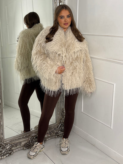 Oversized Shaggy Faux Fur Jacket - Cream