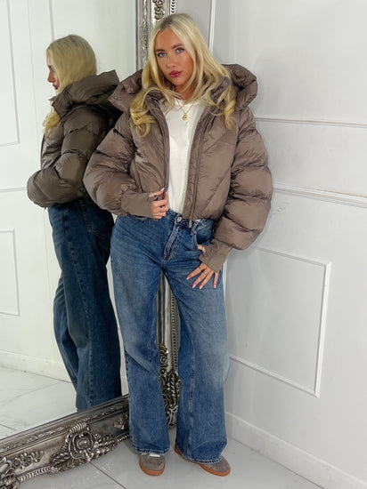 Stay warm and stylish with this taupe puffer coat featuring a detachable hood—perfect for when you want to switch up your look or chase away the chill. Cozy, lightweight, and ready for any adventure, it’s your new go-to for layering up with a dash of fun!