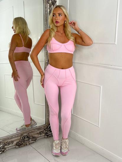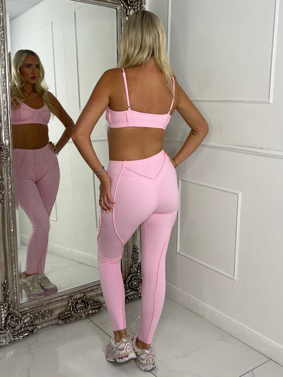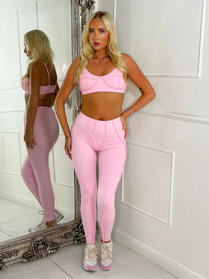 Seam Detail Bra & Leggings Set - Baby Pink