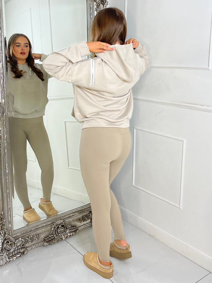 Shoulder Zip Detail Lightweight Hoodie - Beige