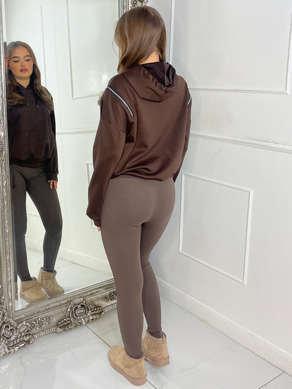 Shoulder Zip Detail Lightweight Hoodie - Brown