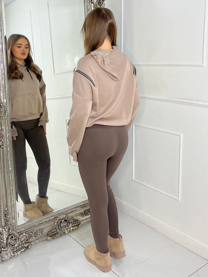 Shoulder Zip Detail Lightweight Hoodie - Taupe