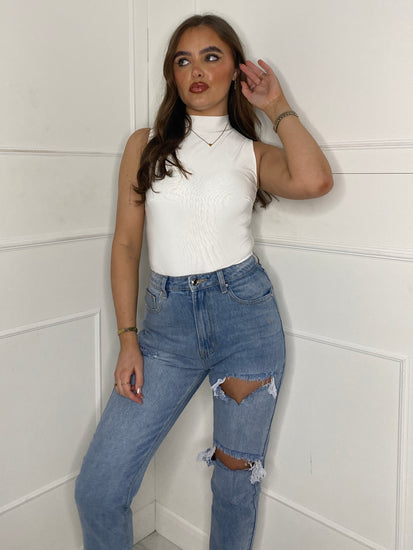 Get ready to slay in style with our Sleeveless High Neck Bodysuit!