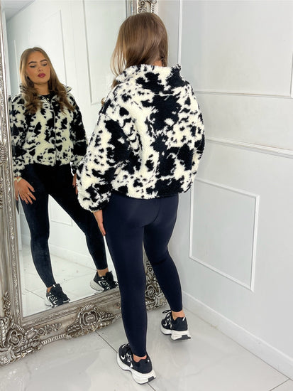 Smudge Print Zip Up Fleece Teddy Jacket - Black/White