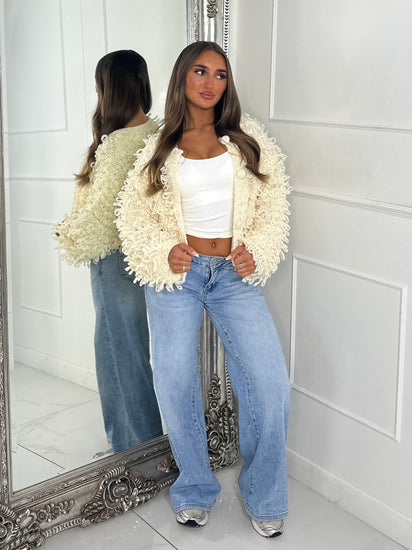 Wrap yourself in cozy charm with this Soft Fluffy Loop Detail Cardigan in beige. Its irresistibly soft texture and playful loop details add a touch of whimsy to your everyday look, making chilly days feel like a warm hug. Perfect for layering, it brings comfort and joy to your wardrobe with every wear.
