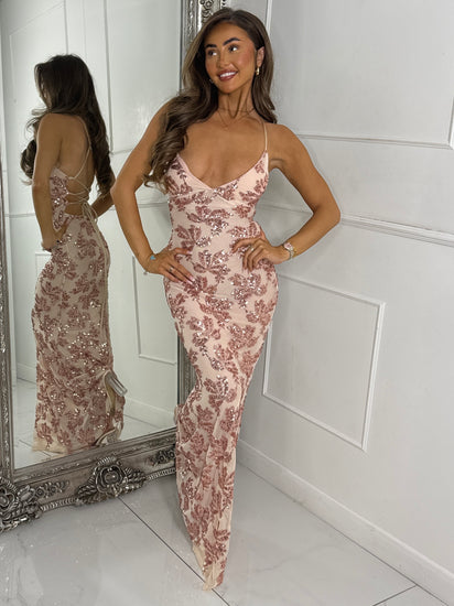 Slip into pure glamour with this show-stopping maxi dress. Featuring delicate sequin detailing that catches the light beautifully, a flattering strappy silhouette, and an eye-catching lace-up back design, this dress transforms any occasion into a moment to shine. Perfect for nights out, celebrations, or whenever you want to feel absolutely fabulous. The flowing maxi length keeps things elegant while the playful details add that extra spark of personality.