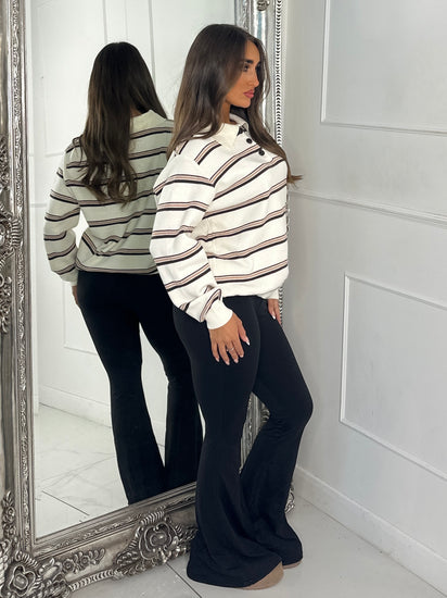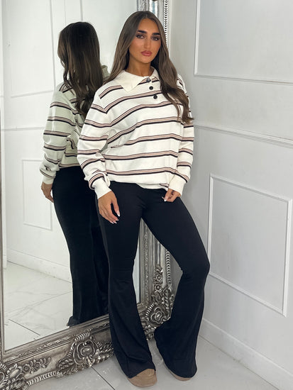 Striped Collared Button Jumper - Cream/Neutral