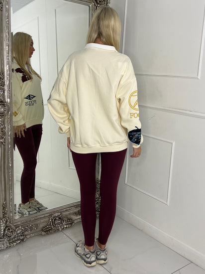 Varsity Badge Detail Rugby Style Top - Cream/Multi
