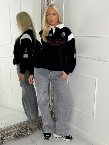 Varsity Slogan Detail Rugby Style Top - Black/Multi